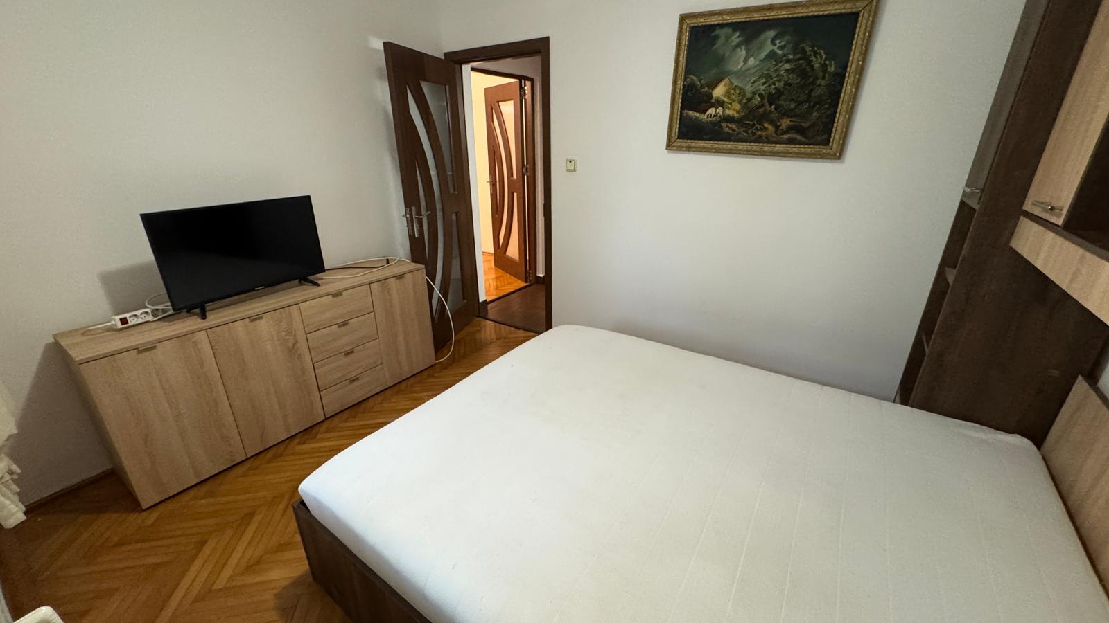 Va prezentam spre inchiriere un apartament cu 2 camere ,situat la parterul unui bloc cu 4 etaje,balcon mare inchis cu termopan,centrala termica,termopane,parchet,aragaz, frigier, masina de spalat ,televizor,mobilat .