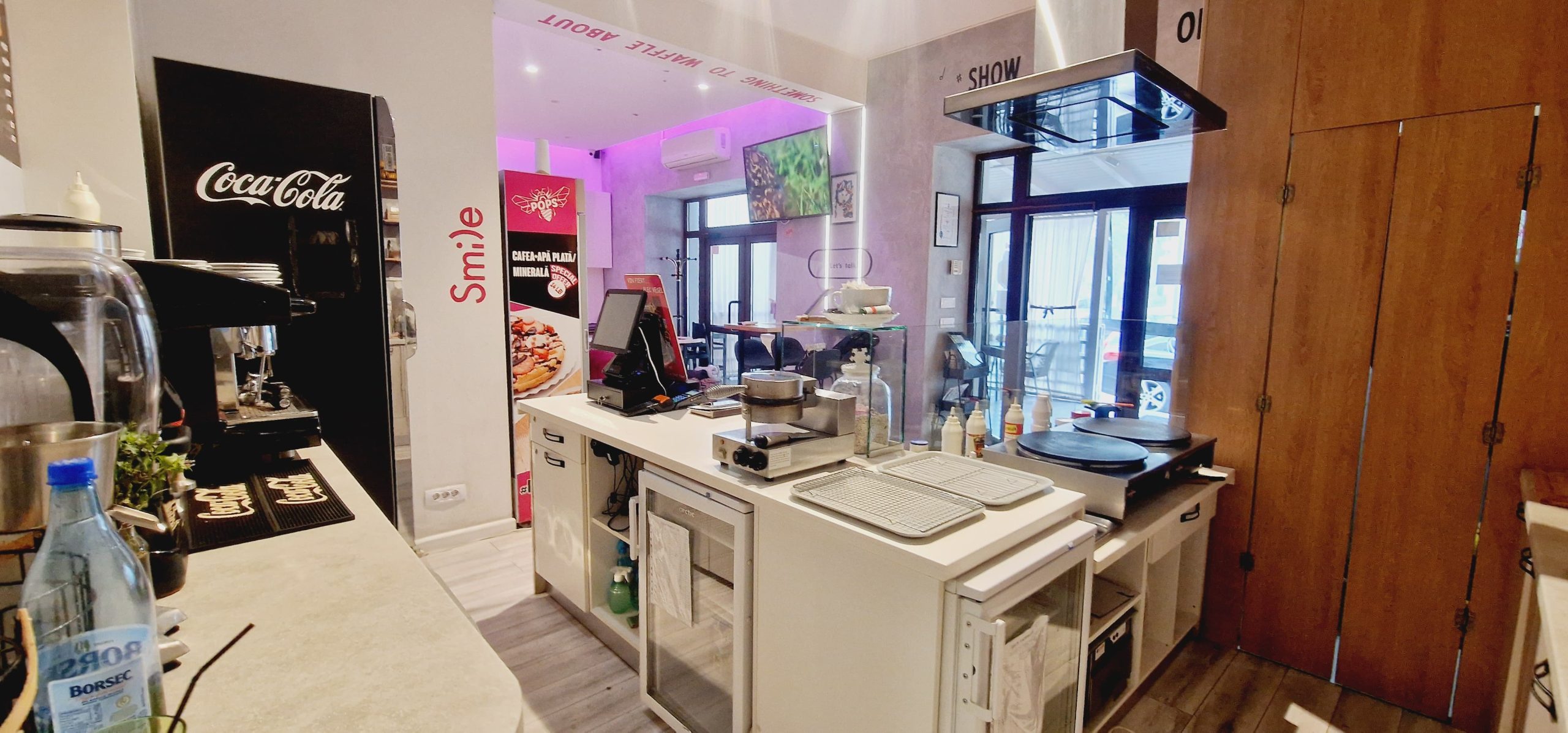 Va prezentam spre vanzare un spatiu cu mobilier elegant, frumos amenajat ,pretabil pentru: fast food, cofetarie/gelaterie, bar si nu numai-fiind locatia ultracentrala, orice activitate se poate desfasura cu succes!